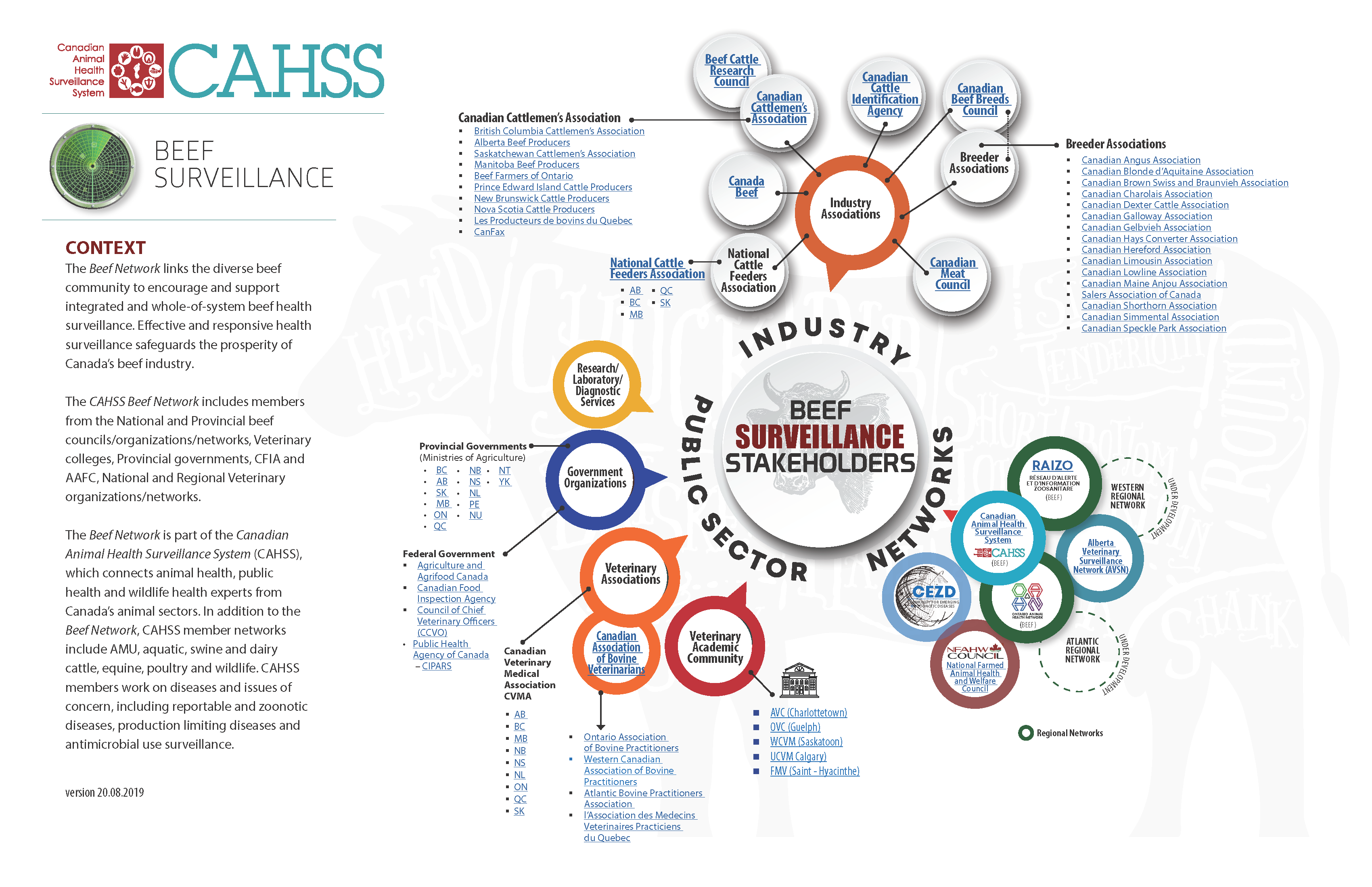 The Canadian Animal Health Surveillance System (CAHSS)’s Beef Cattle Surveillance Network links the diverse beef community - industry, government, and service provider representatives – to explore the opportunities and challenges of coordinating and strengthening beef surveillance systems in Canada.
